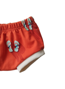 Pantalón corto con cinturilla y puños elásticos con estampado de chanclas.